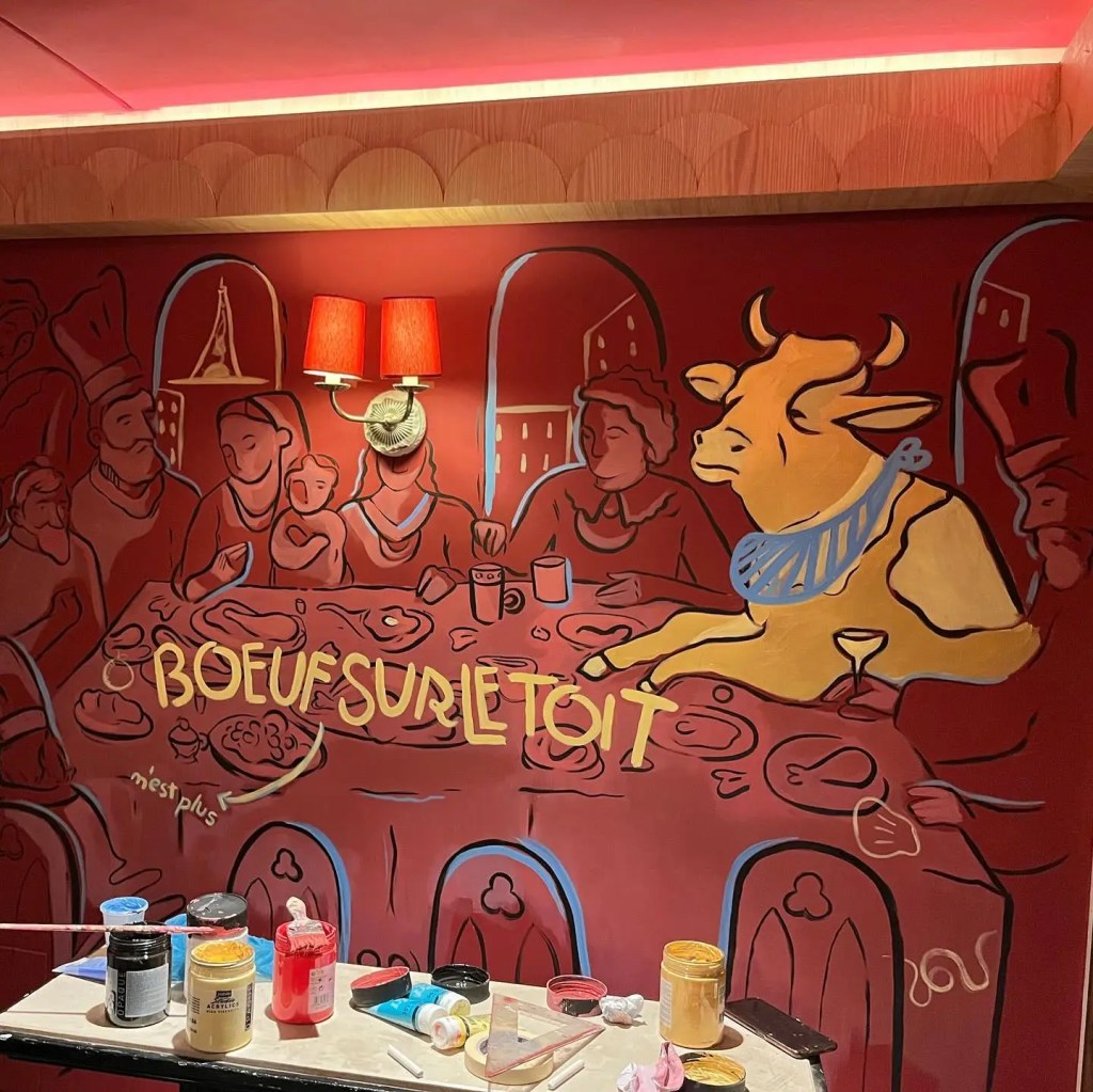 When I first began painting on canvas, I found myself constantly seeking new challenges. I was drawn to the excitement of tackling the next project, and I was always fascinated by working on larger scales. I once created a painting that measured 2 metres by 1.8 metres, and it was an incredibly rewarding experience. So, when the opportunity to work on a mural in Marrakesh arose, I eagerly embraced it, which opened up many new opportunities for me. Both mediums offer unique experiences and challenges, but I truly enjoy the larger-than-life impact that murals can have on a space and its viewers. That said, I wouldn’t say I have a favourite—I enjoy exploring both avenues equally.